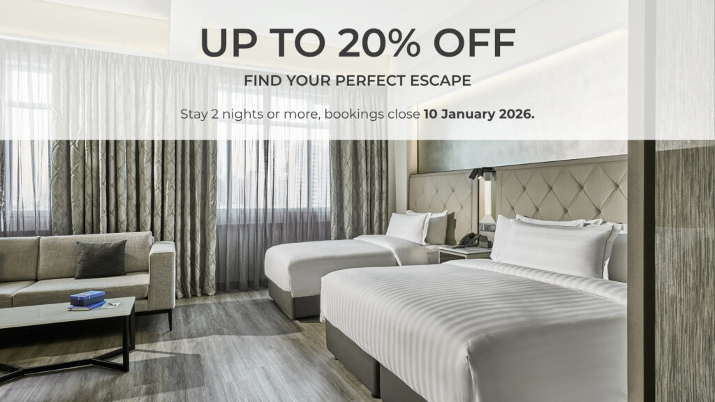 With easy accessibility to downtown areas and cosy café enclaves, create new memories together with your loved one, as you take the time to relax and rejuvenate. Indulge in a pampering stay experience, elevated with treats such as a bottle of red wine and fruit basket, prepared thoughtfully in the comfort of the contemporary furnished room, specially decorated to celebrate meaningful moments such as these.